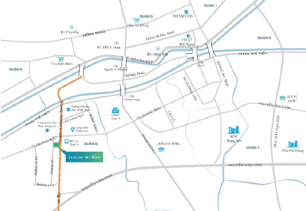 Tọa lạc tại vị trí “VÀNG” mà hiếm dự án nào có được. Với 4 mặt tiền tiền đường lớn ngay giao ngã tư giao đường Tạ Quang Bửu và Quốc lộ 50, căn hộ Sài Gòn Skyview hội tụ đầy đủ các yếu tố cho một căn hộ an cư và đầu tư hoàn hảo.